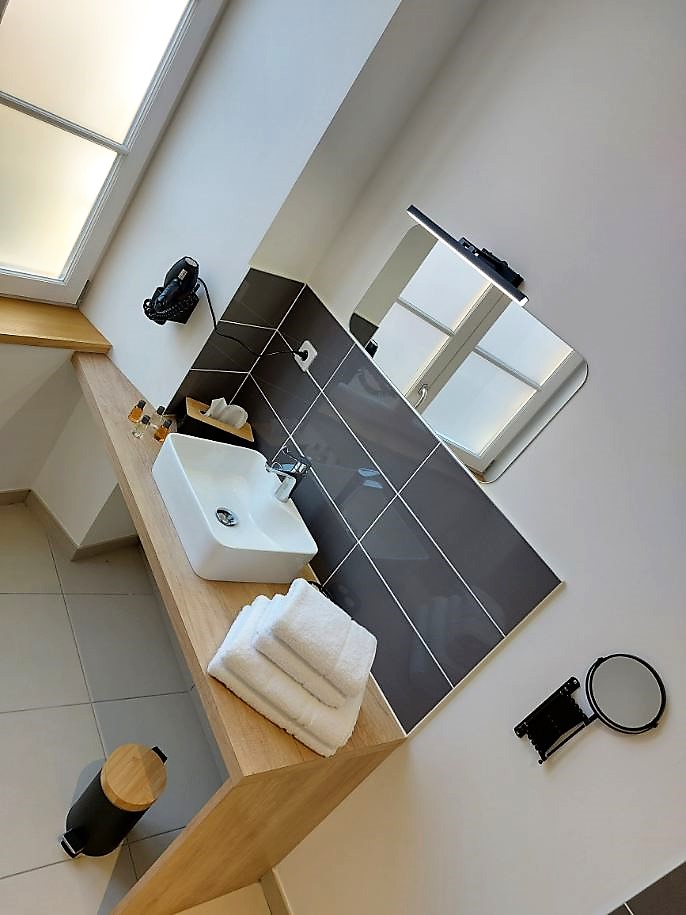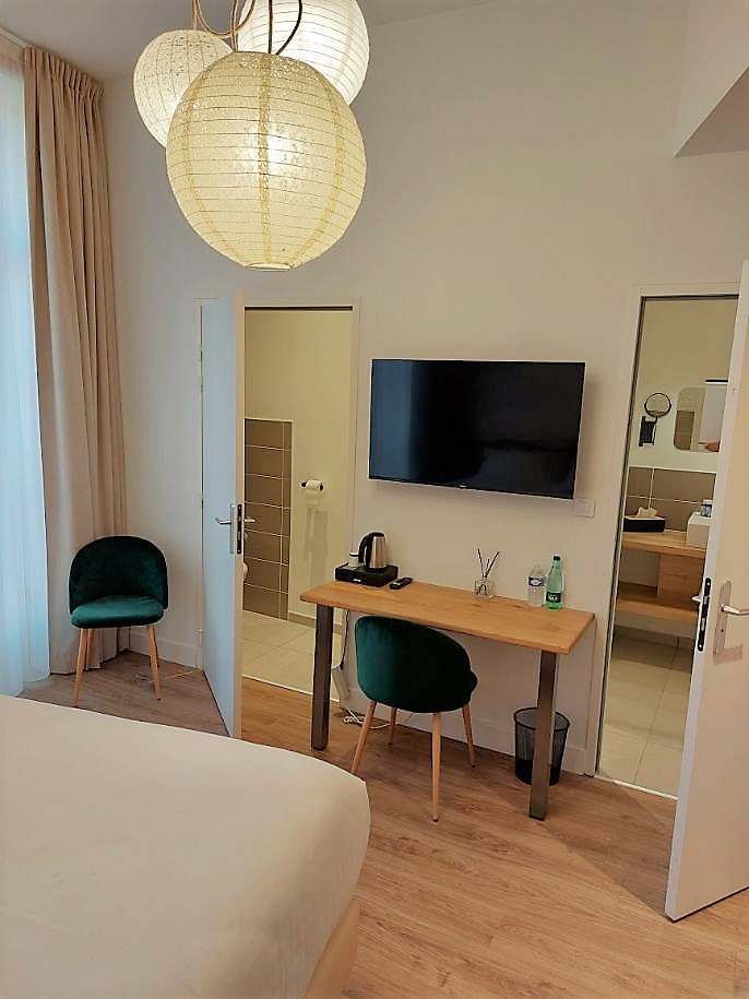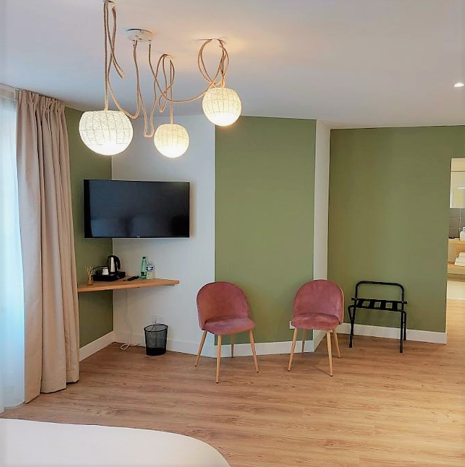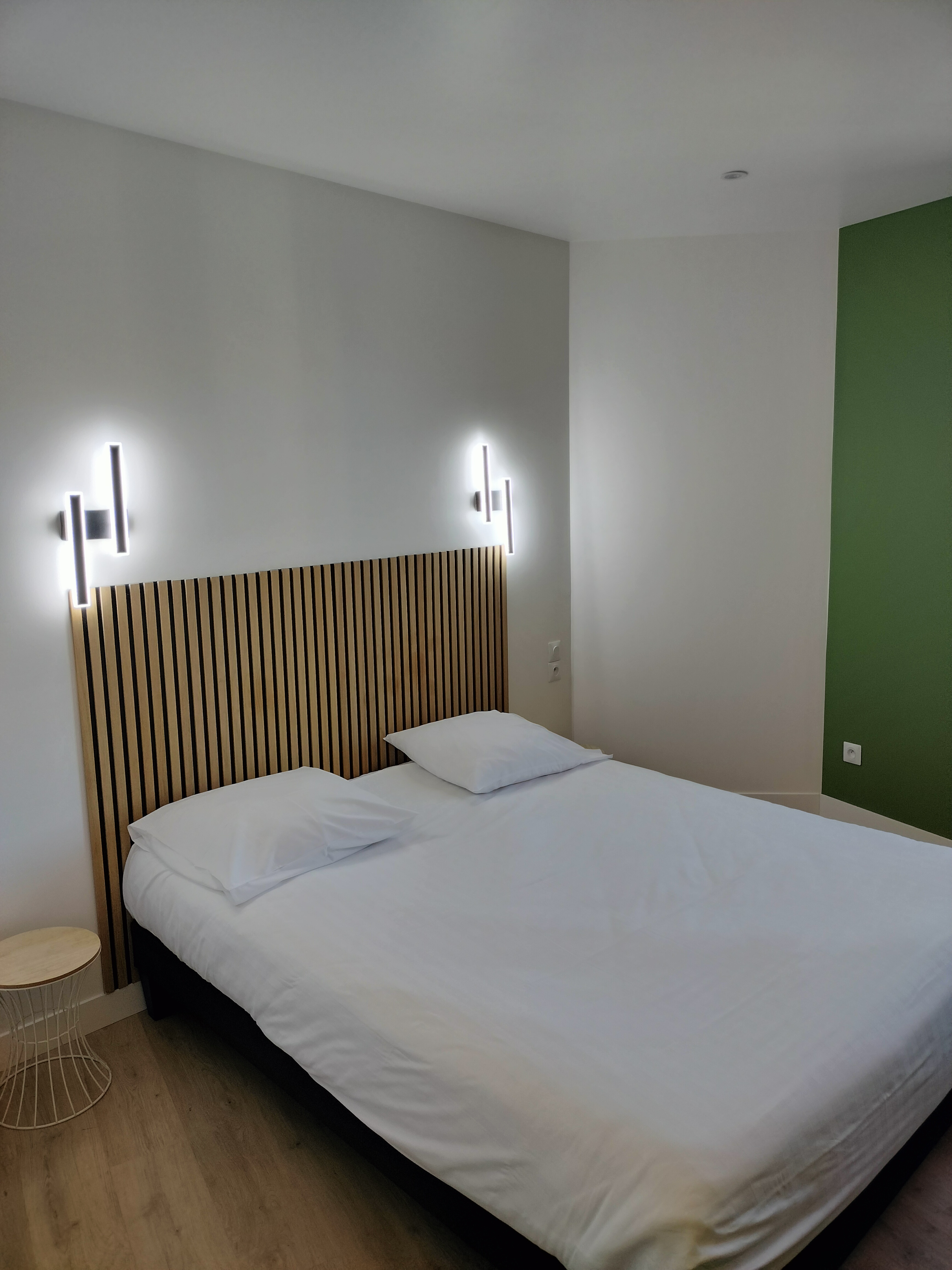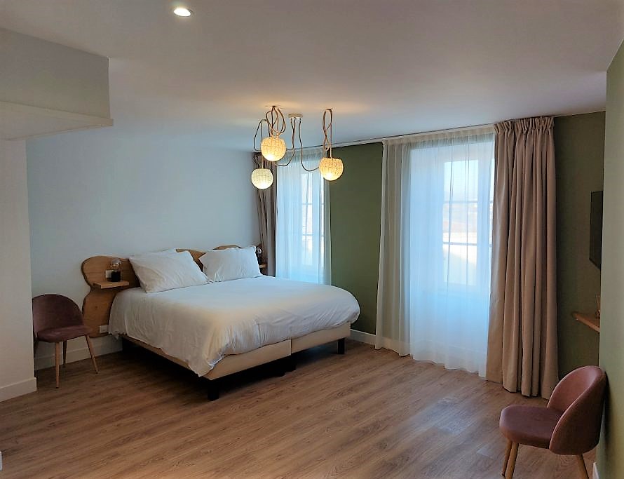 Nos chambres Doubles Supérieures disposent d'un grand lit double 180x200cm, d'une salle de bain privative avec douche et toilettes séparées.